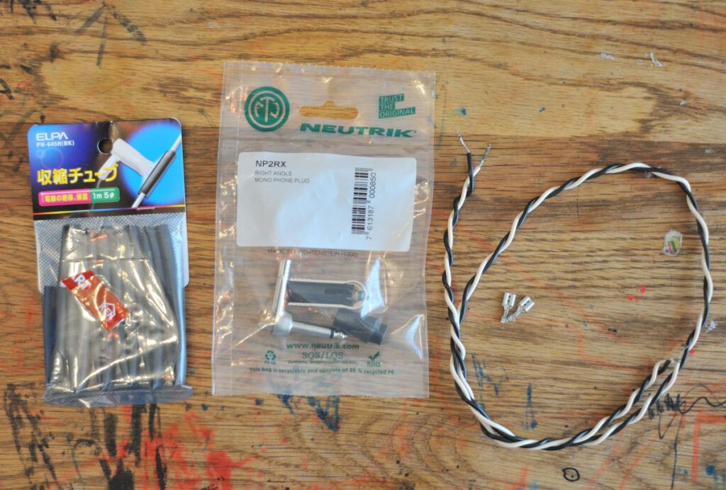 必要な材料が揃ったら、組み付けの作業。フォンプラグの取り付け方から解説していきます。