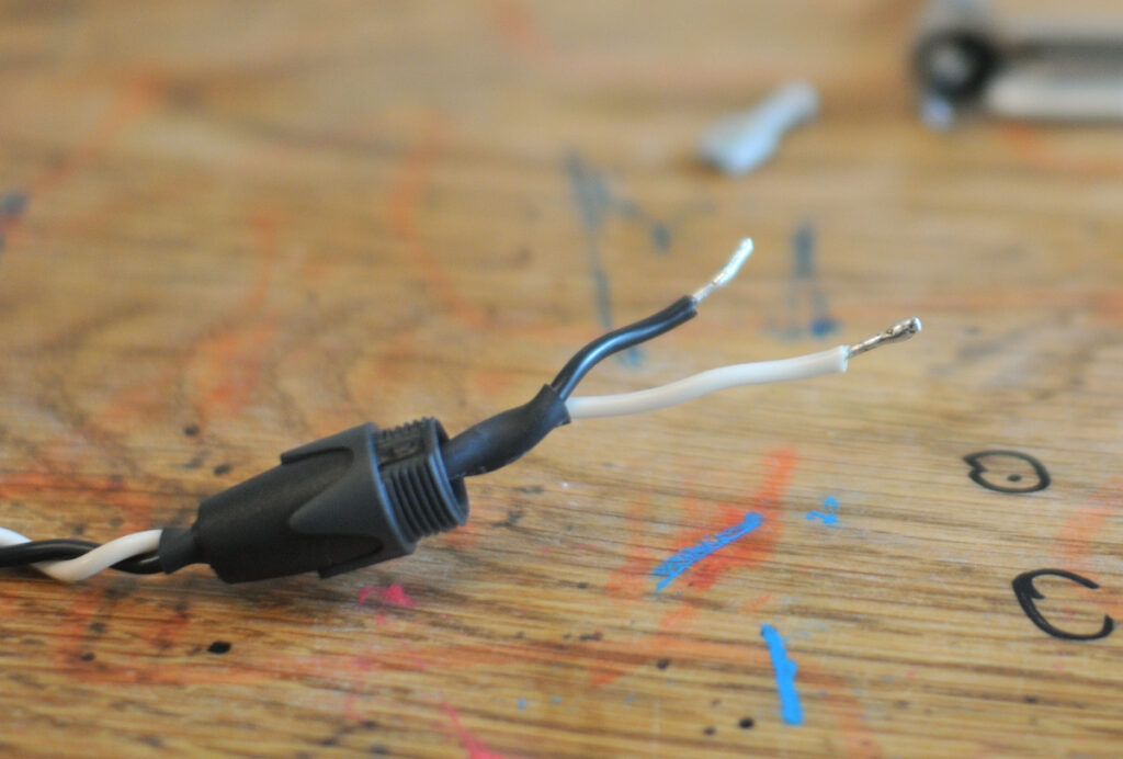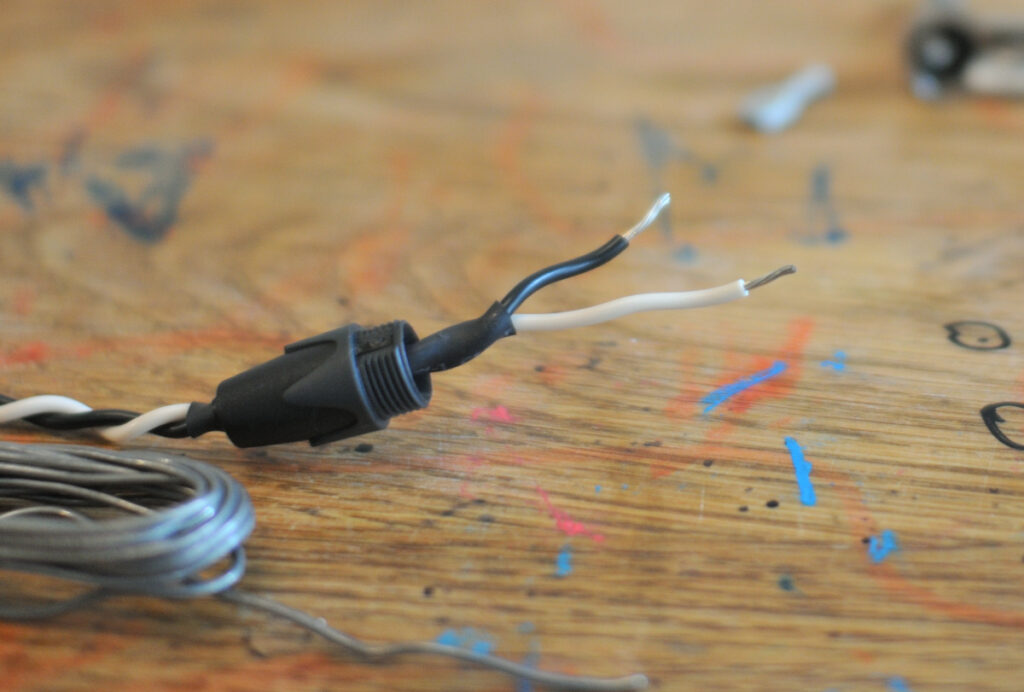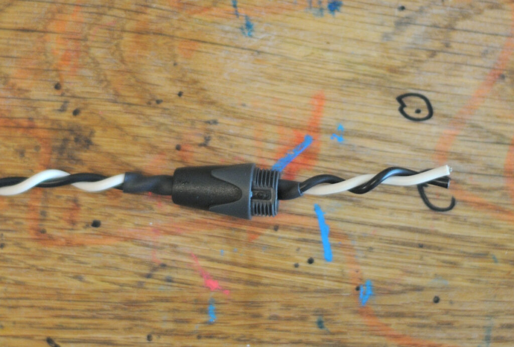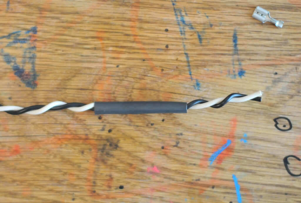 一方、今回使うケーブルは白と黒。どちらをプラスにするかは自分で決めれば良いのですが、白黒のケーブルであれば白をプラスとすることが一般的。今回は世間の慣習に従うことにします。
