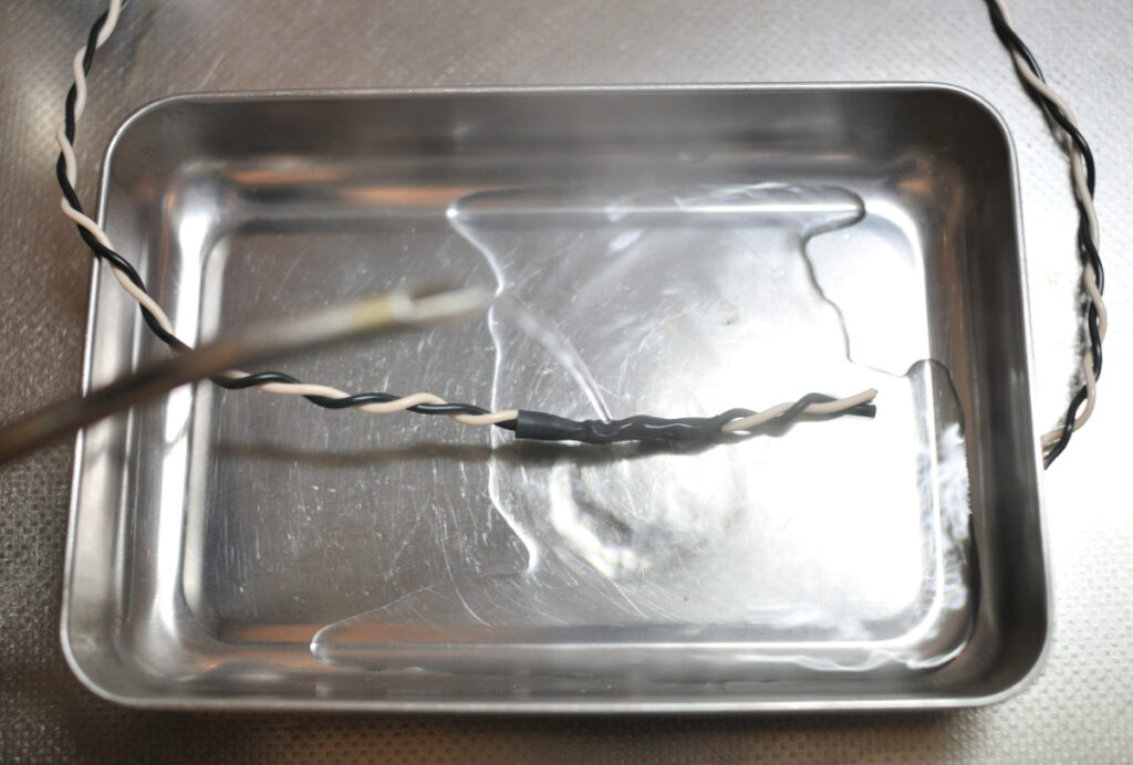 熱圧縮チューブの縮め方でおすすめなのが熱湯をかけること。