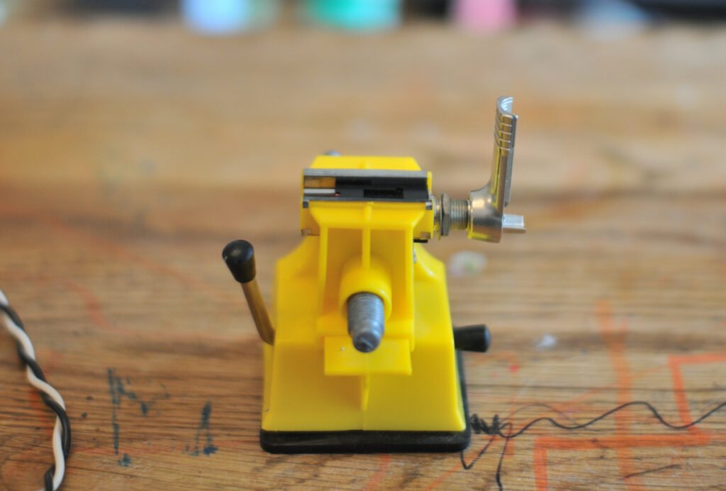 こんな簡易的なモノでもあるのとないのでは大違い。対象物をしっかりと固定することが半田付けのポイントのひとつです。