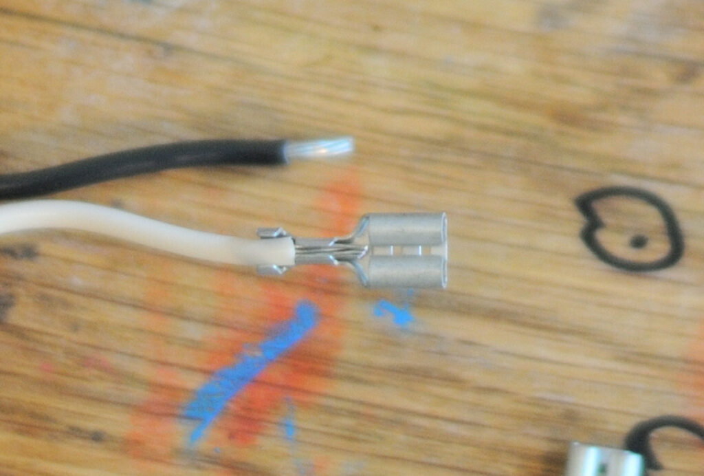 続いてはファストン端子の圧着。ファストン端子とは、スピーカーに直接接続するためのものです。