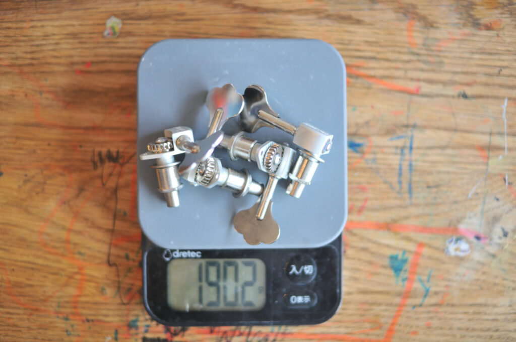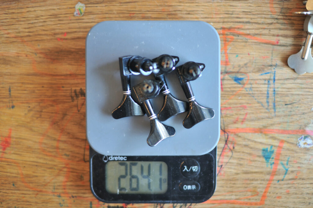 一方で、もともと付属していたGroverの黒いペグ4個の重さは264.1グラム。
