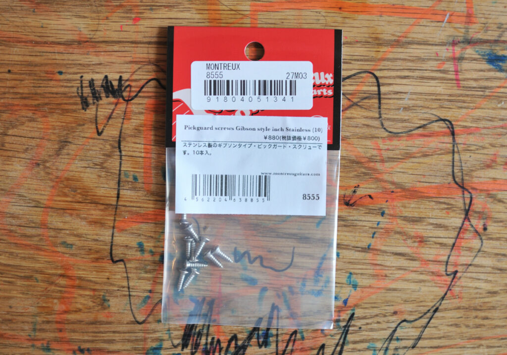購入したリングにはネジが付属していたのですが、「そんなに長い必要ある?」というモノだったため、ちょっと奮発してピックガードの固定に使われるギブソン規格のネジを手に入れました。